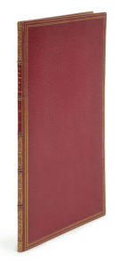 Plaquette in-4, maroquin rouge, triple filet, dos à 5 nerfs très finement orné, dentelle intérieure, tranches dorées ( Hardy ).