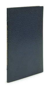 Plaquette in-4, maroquin janséniste bleu nuit, dos à 2 nerfs, bordure intérieure du même maroquin avec deux filets dorés, tranches dorées ( Riviere & Son ).