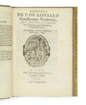 - Pierre de RONSARD. Institution pour l’Adolescence du Roy treschrestien Charles neufviesme de ce nom. Paris, Gabriel Buon, 1562. (6f.) / A4, B2. Barbier, Discours, 12 // Tchemerzine-Scheler, V-436-b // USTC, 14906. L’une des trois éditions princeps qui se distinguent par de légères variantes de composition, sans qu’on puisse donner la priorité à l’une d’entre elles.