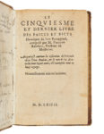 François RABELAIS. Le Cinquiesme et dernier livre des faicts et dicts Heroïques du bon Pantagruel… Auquel est contenu la visitation de l’Oracle de la Dive Bacbuc, & le mot de la Bouteille : pour lequel avoir, est entrepris tout ce long voyage....
