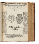 gestes Selon lescripture saincte Accordee a la prophane histoire, et legendes ecclesiastiques… — Paris, Arnoul et Charles les Angeliers frères, 1540. — 2 tomes en un volume in-4, maroquin rouge, triple filet doré en encadrement, dos à 5 nerfs joliment orné, roulette intérieure, tranches dorées ( Reliure du XVIIe siècle ).