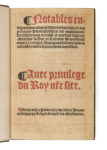 Titre et dernier feuillet brunis, cahier E provenant probablement d’un autre exemplaire, particularité non signalée par les notices Veinant, Ruble et De Backer.