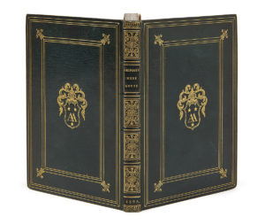 la rue saîct Jacqs a lêseigne de la rose blãche couronnee, 25 octobre 1525. — In-8, maroquin vert lierre avec décor à la Du Seuil et armoiries au chiffre AA , dos à 4 nerfs joliment orné, roulette intérieure, tranches dorées ( Koehler ).