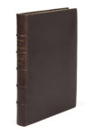 janséniste brun, dos à 5 nerfs, doublure de maroquin rouge ornée d’une dentelle dorée en encadrement, doubles gardes, tranches dorées sur marbrure ( Lortic fils ).