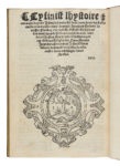 Titre imprimé en rouge et noir, orné d’un beau bois représentant une scène de tournoi avec deux chevaliers en armure s’affrontant à la lance au premier plan, devant un château, observés par des femmes à leur fenêtre et par deux autres chevaliers attendant leur tour. Marque de Jean Bonfons (Renouard, n° 60) sous le colophon, au verso du dernier feuillet et nombreuses lettrines xylographiques dans le texte, grandes et petites, provenant de plusieurs alphabets.