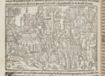 L’édition est par ailleurs très abondamment illustrée de 98 grands bois dont 6 à pleine page (83 bois différents dont 12 répétés) et 61 à double sujet. Ces bois, repris ou copiés d’après l’édition Topié/Herenberck de 1490, comme c’est le cas de tous les éditeurs lyonnais de l’ouvrage à l’époque, représentent de très riches scènes de batailles, assauts de châteaux, chevaliers en armes, prouesses d’Hercule, naumachies, etc. Les six bois à pleine page illustrent : la ville de Troie (répété), l’assaut de Troye la grande (répété), la flotte des Grecs devant Troie et la prise de Troie avec le cheval introduit dans la ville et Ulysse emmenant Hélène.
