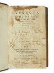 I. Œuvres en rime . 1573. Édition originale, incomplète de deux feuillets liminaires contenant l’ Extrait du privilège , comme l’est l’exemplaire en vélin de l’époque conservé à la BnF (Res-YE-1984) (Tchemerzine-Scheler, I-266).