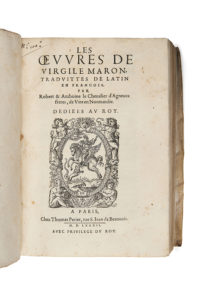 Édition originale de la traduction française des œuvres de Virgile par les frères Robert et Anthoine Le Chevalier, sieurs d’Aigneaux, ou Agneaux.