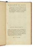 Fontaine, pour luy, et Gilles Corrozet libraire tenant sa boutique en la grand salle du Palais, pres la chambre des consultations, 1544. — In-8, maroquin rouge avec fleuron losangé central, dos à nerfs orné d’un petit fleuron répété, dentelle intérieure, tranches dorées sur marbrure ( Trautz-Bauzonnet ).