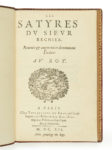 Mathurin RÉGNIER. — Les Satyres Reveuës & augmentées de nouveau : Dediées au Roy. — Paris, Toussaincts Du Bray, 1612. — In-8, maroquin janséniste bordeaux, dos à 5 nerfs, dentelle intérieure, tranches dorées ( Reliure du XXe siècle ) .