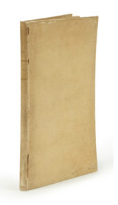 Reliure légèrement voilée. Petit manque angulaire de papier sans atteinte au texte à l’ensemble du volume.