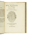 - Pierre de RONSARD. Discours des miseres de ce Temps. A la Royne mere du Roy. Paris, Gabriel Buon , 1562 . (6f.) / A4, B2. Barbier, Discours , 26 / Tchemerzine-Scheler, V-439. L’une des trois éditions parue la même année que l’édition princeps anonyme, et qu’on ne différencie entre elles que par quelques variantes de composition et d’orthographe, sans qu’on puisse établir de priorité. Très légères annotations marginales modernes au crayon.