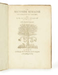 Guillaume de SALUSTE, Seigneur Du Bartas. — La Seconde semaine ou Enfance du monde. — Paris, P. L’Huillier, s.d. (1584). — In-4, velours châtaigne, dos lisse avec importants manques ( Reliure de l’époque ).
