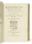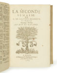 Le second volume est la deuxième édition de La Seconde semaine qui avait paru pour la première fois chez le même éditeur l’année précédente en 1584 (cf. le n° 284 du présent catalogue).