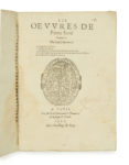 Pierre SOREL. — Les Œuvres… — Ou sont contenuz. Les Complaintes d’Amour. — L’Ambition à la Royne, L’Advertissement du monstre du Danube au Senat romain, Les Fantasies & Paraphrase du premier livre de lœuvre & jour d’Hesiode. — La...