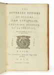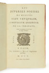 Jean VAUQUELIN de LA FRESNAYE. — Les Diverses poesies... — Caen, Charles Macé, 1605. — 2 parties en 2 volumes in-8, veau glacé blond, dos à 5 nerfs ornés ( Reliure du XVIIIe siècle ).