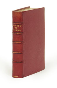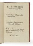 François VILLON. — Les Œuvres de maistre Francoys Villon. — Le monologue du franc archier de Baignollet. — Le Dyalogue des seigneurs de Mallepaye & Baillevent. — Paris, Galiot du Pre, 1532. — In-16, maroquin janséniste rouge, dos à 5...