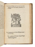Le volume contient deux autres pièces sur la mort de François Ier et le sacre de Henri II qui ont dû être reliées ici en raison de la proximité des dates d’édition des trois ouvrages. Celui sur le sacre et le couronnement de Henri II contient une gravure sur bois à pleine page représentant la cérémonie (f. A6v). Bel exemplaire réglé aux armes de Nicolas Lambert, seigneur de Thorigny et de Vermont (1657-1729), conseiller au Parlement de Paris en la deuxième chambre des requêtes, président de cette même chambre en 1697, élu prévôt