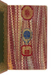janvier 1552. — In-8, maroquin rouge, décor dans le genre Du Seuil avec triple filet et fleurons dorés, dos à 5 nerfs orné, doublure de maroquin vert sapin largement ornée d’une dentelle droite formée de fers répétés, doubles gardes, tranches dorées sur marbrure ( Trautz-Bauzonnet ).
