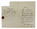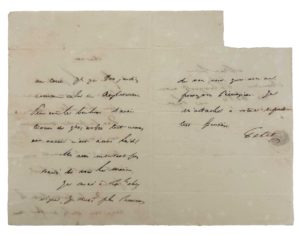 2 pages in-12 et demi, adresse au verso, cachet de cire rouge. Stendhal relate sa visite à la Villa médicéenne de Poggio a Caiano.
