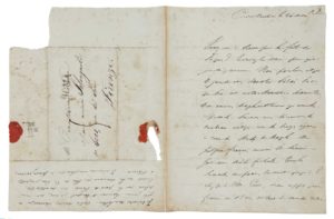 Civitavecchia, le 24 mars [1833]. 2 pp. 1/4 petit in-4, avec adresse, marque postale et traces de cachet de cire rouge. Belle lettre évoquant les villes de Rome, Naples et Florence.
