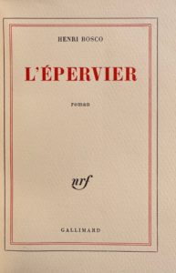 L'Épervier. Paris, Gallimard, 1963. In-8, bradel cartonnage de papier à motifs d'oiseau bruns et blancs, dos …