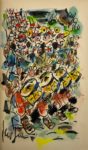Les quatorze compositions à pleine page ont été coloriées et signées par Gen Paul. L'exemplaire est enrichi d'un portrait de Céline à l'encre noire et aquarelle signé de Gen Paul contrecollé en vignette de titre (7 x 6 cm). Envoi autographe signé de l'artiste sur le faux-titre : à Patrick. J'ai colorié tous les dessins, daté 1942.
