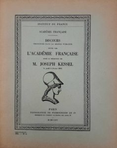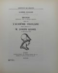 KESSEL (Joseph) — Discours prononcés dans la séance publique tenue par l'Académie française pour la réception de M. Joseph Kessel.