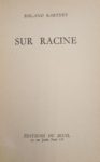 Sur Racine. Paris, Le Seuil, 1963. In-8, broché. Édition originale. Exemplaire du service de presse ; il n'a pas été tiré de grand papier. Envoi autographe signé à Dominique Aury (1907-1998), adjointe de la direction à la NRF mais aussi auteur d'Histoire d'O, sous le pseudonyme de Pauline Réage. Fine mouillure en pied, quelques rousseurs éparses.