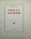 Pour un Malherbe. Paris, Gallimard, 1965. In-4, broché. Édition originale. Un des 64 exemplaires sur vélin pur fil. Envoi autographe signé : « pour Claude Couffon, caennais comme Malherbe (et comme je le suis aussi d'adoption) avec l'hommage admiratif de l'auteur. »