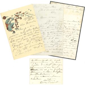 19 pages in-8 ou in-12 (2 cartes), une avec décor japonisant. Intéressante correspondance artistique au sculpteur Bartholomé.
