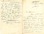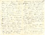 Bachivillers par Chaumont-en-Vexin [fin 1891]. Elle est allée à Paris pour trouver une nouvelle cuisinière. Son père ne va pas mieux [il meurt le 9 décembre 1891]. « Quand à moi voilà six semaines que je travaille sur un tableau que je suis forcée d’abandonner tellement le temps a été contraire à la peinture en “plein air” ! Leroy est décoré du ruban violet ! Impossible d’imaginer un homme plus heureux, il m’écrit qu’il doit cet honneur à mon “haut concours”. Si vous voyez M. Raffaëlli voulez-vous le remercier pour moi ? »… Elle espère qu’avec Degas ils vont bien et qu’ils s’accorderont un peu de changement et de repos. Elle a déjà annoncé à Mrs. Havemeyer « que ses tableaux seront bientôt en Amérique » …. – [Octobre 1892]. Elle demande à Bartholomé la faveur de lui prêter [un chevalet ?] « afin que je puisse finir mes quelques kilomètres de peinture ». Le temps est très mauvais, elle a fait installer un poêle ; « heureusement ma mère aime la campagne autant que moi. ». Elles n’ont vu personne, à l’exception de Pissarro, avec son « terrible fils, sa femme et sa belle-fille. Pissarro m’a complimenté sur “mon courage” ? J’espère que vous avez beaucoup travaillé, car après tout c’est le bonheur ». Elle n’ose lui demander de venir avec Degas : « j’ai besoin de tout “mon courage” et il a une façon de m’applatir, que je ne puis supporter pour le moment »… – Elle connait la propriété de M. Koechlin et a souvent souhaité, en passant devant sa grille, qu’elle fût à louer : « Il y a même un atelier ! ». Elle demande si Bartholomé demeure à Paris « par ces temps de choléra », elle espère sa prochaine visite à Bachivillers « quand vous aurez un moment de répit de vos travaux »… Septeuil jeudi. Il a tellement plu qu’elle n’a pu l’inviter à venir la voir « avec Monsieur Degas. […] Impossible de travailler depuis que nous sommes ici, je suis au désespoir ». Son frère vient de New York avec ses enfants pour les voir la semaine prochaine, et elle aimerait que Bartholomé lui fasse le plaisir de venir un prochain jour avec Degas, si ce dernier d’est pas déjà parti pour Cauterets… Elle regrette de ne pas voir le nom de Madeleine Lemaire parmi les nominations à la Légion d’Honneur. Elle est remise de sa chute ; le cheval qu’elle a loué est tombé et s’est abimé le genou, la première fois que le cocher l’a sorti… Lundi. Elle n’a jamais reçu sa lettre qui, comme celle qu’elle a écrit à Mme Dreyfus [elle a fait son portrait], s’est perdue, car « la poste n’est pas bien faite à Septeuil ». Elle a passé beaucoup plus de temps à Paris que voulu, sans avoir le temps d’aller voir Bartholomé. « J’ai su chez Durand-Ruel que Degas était à Cauterets et aussi ce qui m’a fait beaucoup de peine que ce pauvre John Lewis Brown était à toute extrémité. Est-ce que Degas a de bonnes nouvelles de Fèvre [son beau-frère l’architecte Henri Fèvre, en Argentine], il devait être inquiet au milieu de tous ces bruits de révolution. J’espère que vous avez bien travaillé ; je voudrais en pouvoir dire autant, non je ne peux pas dire que je n’ai pas travaillé car je travaille toute la journée mais les résultats ! »