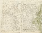 4 pages in-8 (traces d’aquarelle sur la 3e page), enveloppe ; cachet de collection Achille Benouville. Superbe lettre à son compatriote et ami Considerant, sur son arrestation, son engagement politique, son activité pendant la Commune, et l’affaire de la Colonne Vendôme. Elle semble inédite.