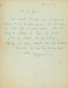 Jean METZINGER (1883-1956) — 2 L.A.S., 1919 et s.d., à Paul Dermée