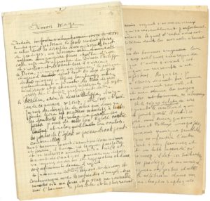 Il est accompagné d’une « note » (mot inscrit au crayon rouge au centre de la page) inédite, canevas primitif du récit. Nous en citons le début : « Simon Mage – Samaritain, St Pierre le poursuit à Antioche à Rome, veut s’élever devant Néron, Pierre rompt le charme. Diacre Philippe rencontre à Samarie devin sorcier, Simon frappé des prodiges accomplis par disciples Jésus demande et reçoit baptême à l’arrivée Pierre et Jean veut acheter droit conférer St Esprit […] Simon c’est Pierre lui-même »…