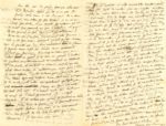 4 pages in-8 très remplies d’une petite écriture. Très belle lettre d’amour, au début de sa liaison avec Louise Colet, où il revient sur son amour pour Élisa Foucault. [Élisa FOUCAULT, la future Mme Schlesinger, le premier amour de Flaubert, rencontrée à Trouville, le modèle de Mme Arnoux dans L’Éducation sentimentale.] « Quand ma journée est finie et que j’ai assez pensé, écrit, lu, rêvé baillé quand je suis saoul de travail et que j’éprouve la fatigue de l’ouvrier sur le soir, je me repose dans ton souvenir. Comme sur un bon lit je me livre à toi, je t’aspire. Ça me rafraîchit et ça m’égaye ainsi que ces bonnes brises nocturnes qui vous pénètrent l’âme de vie et de jeunesse. On ouvre sa fenêtre, on ouvre son cœur pour s’emplir de ce quelque chose d’innomé qui est si doux et si grand. Il me semble que la nuit est faite pour un ordre d’idées tout particulier et autre que celui où nous vivons tout le jour. C’est le moment des soupirs, des désirs, du souvenir et de l’espoir ; c’est là que seule et éveillée la pensée plane à l’aise entre la terre et le ciel comme ces oiseaux qui vivent dans les nuages. Le corps aussi y a des joies plus violentes. Qu’est-ce qui a jamais eu l’idée de faire un festin autrement qu’aux flambeaux ? Le diable m’emporte si je sais ce que je veux dire si ce n’est que ce soir je voudrais t’avoir là, te baiser sur les lèvres, passer mes mains sous tes papillotes légères – et mettre ma tête sur ta gorge quoique cela me soit défendu depuis que tu as vu que je parlais de la sienne à Me Foucaud. Tu as donc trouvé ma lettre un peu tendre ? Je ne m’en serais pas douté. Il me semble au contraire qu’il y avait par moments un peu d’insolence et que le ton général en était légèrement gentilhomme ? Tu me dis que j’ai aimé sérieusement cette femme. Cela n’est pas vrai. – Seulement quand je lui écrivais, avec la faculté que j’ai de m’émouvoir par la plume, je prenais mon sujet au sérieux mais seulement pendant que j’écrivais. Beaucoup de choses qui me laissent froid ou quand je les vois ou quand d’autres en parlent m’enthousiasment m’irritent me blessent si j’en parle et surtout si j’écris. C’est là un des effets de ma nature de saltimbanque. Mon père, à la fin, m’avait défendu d’imiter certaines gens (persuadé que j’en devais beaucoup souffrir ce qui était vrai quoique je le niasse) entr’autres un mendiant épileptique que j’avais un jour rencontré au bord de la mer. Il m’avait conté son histoire. Il avait été d’abord journaliste, etc. C’était superbe. Il est certain que quand je rendais ce drôle j’étais dans sa peau. On ne pouvait rien voir de plus hideux que moi à ce moment là. Comprends-tu la satisfaction que j’en éprouvais ? Je suis sûre [sic] que non. Pour en revenir à cette vénérable créature, voilà avec elle toute la vérité. J’ai eu d’autres aventures plus ou moins drôles. Mais de toutes ces bêtises là, qui même dans le temps ne m’entraient pas bien avant dans le cœur je n’ai eu qu’une passion véritable. Je te l’ai déjà dit. J’avais à peine 15 ans, ça m’a duré jusqu’à 18, et quand j’ai revu cette femme là après plusieurs années j’ai eu du mal à la reconnaître – Je la vois encore qqfois mais rarement et je la considère avec l’étonnement que les émigrés ont dû avoir quand ils sont rentrés dans leurs châteaux délabrés “est-il possible que j’aie vécu là !” Et on se dit que ces ruines n’ont pas toujours été ruines et que vous vous êtes chauffé à ce foyer délabré où la pluie coule et où la neige tombe. – Il y aurait une histoire magnifique à faire, mais ce n’est pas moi qui la ferai, ni personne, ce serait trop beau. C’est l’histoire de l’homme moderne depuis 7 ans jusqu’à 20. Celui qui accomplira cette tâche restera aussi éternel que le cœur humain lui-même. Quand tu voudras je te raconterai qqchose de ce drame inconnu que j’ai observé et chez moi et chez les autres aussi. Il doit se passer chez la femme qqchose de semblable, mais je ne m’en doute pas. Je n’en ai pas encore rencontré qui m’aient montré franchement les cendres de leur cœur ; elles veulent vous faire croire que tout y est braise, elles le croient elles-mêmes. – Un conseil : pendant que j’y pense, ma toute chérie, ne parle pas tant de moi à Phidias [le sculpteur James PRADIER], tu finiras par l’ennuyer de moi. Tu sais qu’il n’y a rien de désagréable à entendre comme l’éloge d’un ami quand il est répété surtout ». Pradier a proposé à Flaubert de partir avec lui pour Nîmes : « comme si je le pouvais ! »… Puis il parle de Maxime DU CAMP et d’un dîner organisé par Louise : « J’aurais l’air du maître de maison qui invite ses amis chez lui. – Comme il a plu aujourd’hui on n’est pas sorti et il a fallu faire la conversation. Ah Dieux ! le grec en a souffert et moi aussi – et puis les enfants – décidément quoique ça soit bien gentil je n’aime pas les moutards, ils ressemblent trop aux hommes. Les sentiments factices sont assommants mais les naturels jouissent qqfois de ce privilège. J’ai éprouvé aujourd’hui justesse de cette maxime. Adieu cher Amour, mille baisers, pense à moi, il n’est pas besoin de te le dire n’est-ce pas ? envoie-toi, dans la glace, deux bons baisers de ma part ». Correspondance (Pléiade), t. I, p. 361.