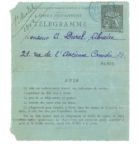 On joint une L.A.S. au libraire A. Durel (1 p. in-12, télégramme, adr. au dos), ordre d’achat dans une vente à l’Hôtel Drouot : « le lot 41, Rome au Siècle d’Auguste […] à la limite de 16 francs »….