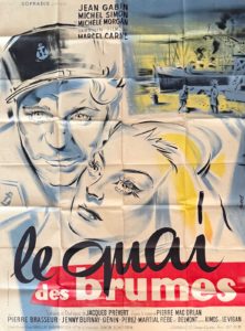 160 x 114 cm. Affiche du film Quai des brumes de Marcel Carné, scénario et dialogues de Jacques Prévert d’après le roman de Pierre Mac Orlan, avec Jean Gabin et Michèle Morgan.