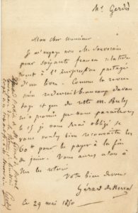 Gérard de NERVAL (1808-1855) — L.A.S., 29 mai 1850, à l’imprimeur Jean-Pierre Gerdès