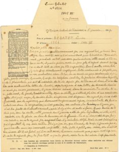 6 pages in-4 sur papier administratif de la prison, avec les nos d’écrou (1724) et d’atelier (Inos III). Longue et intéressante lettre de la prison de Clairvaux, évoquant sa vie de prisonnier, Céline, l’art, ses lectures.