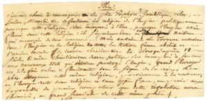 « C’est une chose à remarquer : les ph[ilosoph]es Porphyre, Jamblique, Celse, Julien, Hieroclès &c. defendirent la religion de l’Empire politiquement parce que cette Religion s’était incorporée à l’État, parce que l’Empire avait fleuri sous cette Religion : ils s’opposèrent donc au culte naissant qui menaçait de tout renverser… Mais en vain. Le torrent entraina tout : l’Empire et la religion de toutes les Nations furent abolis et l’ancien monde se trouva chrétien &c. Et lorsqu’après 18 siècles ce même christianisme devenu politique s’est incorporé à son tour aux nouveaux États qui s’étaient partagé l’Empire, quand l’Europe est à la fois calme & florissante sous le signe de la croix, les ph[ilosoph]es attaquent cette même religion, parviennent à la renverser, et l’Europe reste sans religion […] en proie aux bayonnettes du premier usurpateur que cette révolution aura favorisé, au grand scandale de cette même ph[ilosoph]ie ». Au verso, authentification a.s. par son frère le général Claude-François, comte de Rivarol (1762-1848)