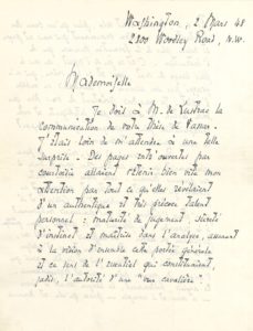 SAINT-JOHN PERSE (1887-1975) — L.A.S. « Alexis St L. Léger », Washington 2 mars 1948, à une demoiselle
