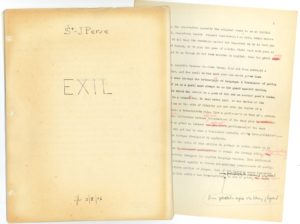 Introduction de Louise Varese à sa traduction d’Éloges ans Other Poems (New York, Norton, 1944), avec corrections et additions autographes au crayon rouge, dont la date « New York, 1943 ». 3 p. en anglais.
