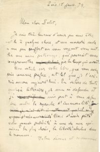Émile ZOLA (1840-1902) — L.A. (brouillon), Paris 15 janvier 1879, à Adolphe Belot