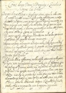 158 pages sur 79 ff. petit in-4, reliure vélin ancien, filets à froid, titre manuscrit au dos, tranches rouges ; en italien. Traité sur la façon de bien se tenir à cheval, les règles à observer pour chevaucher, pour faire obéir un cheval… Etc. Incipit : « Come deve stare il Prencipe, o Cavaliero sopra la sella »…
