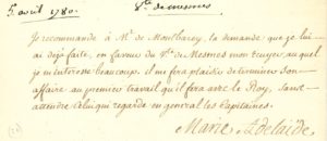 Madame ADÉLAÏDE DE FRANCE (1732-1800) fille de Louis XV — P.S. « Marie Adelaïde », 5 avril 1780, à M. de Montbarey