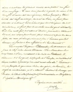 3 pages in-4. Il n’a pas encore reçu les notes du général « sur la guerre de Naples, et indique comment les lui faire parvenir. Vive critique du livre du général Gourgaud sur la campagne de Russie et de son « jésuitique patelinage de la calomnie »… Il s’interroge sur le successeur de l’Empereur de Russie Alexandre : « délivrera-t-il les Grecs, les peuples de l’Europe, en laissant à chaque nation le poids qu’elle doit avoir chez elle ? »…