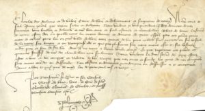 Charles, duc d’Orléans et de Valois, comte de Blois et de Beaumont et seigneur de Coucy, donne ordre à son trésorier de payer à son « bien ame et feal escuier et chambellan Robert de Laire la somme de trente escuz dor pour avoir et achaiter pour lui en nostre ville de Blois trois queues de vin pour icelles fere mener en son hostel de la Motte sur Beuvron et en recompense de ce que par plusieurs fois nous avons este en ses hostiels audit pais et beu de son vin dont il ne nous a rien voulu compter »…