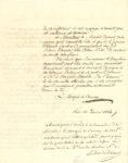 Le marquis Charles-François de Bonnay (1750-1825) s’adresse au duc de Damas, proche du Dauphin. Il évoque les réparations à faire à la tombe de l’abbé Edgeworth (à Mittau), dont s’est occupé le professeur Groschke ; pour le récompenser, il suggère de lui offrir les derniers volumes du Voyage pittoresque de la Grèce du comte de Choiseul-Gouffier ; une apostille a.s. du duc de Damas donne l’accord du Dauphin (2 p. in-4) ; sur la 3e page reçu du libraire Blaise des 325 F versés par le marquis de Bonnay pour la fourniture des volumes.