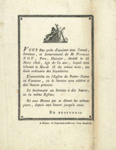 Billet de part (décanats de Neublans et Sexte, 1729. 3 faire-part de Reims en 1806.